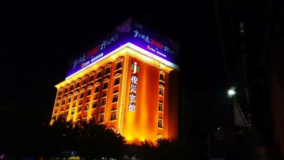英德俊興賓館位于英德市中心,和平南路118號.建筑面積3800多平方米,雄踞市東西南北交通總匯。車水馬龍,人流不息,商賈云集,百業(yè)昌興的黃金地段?! ≠e館樓高七層既歐路豪情,又獨領(lǐng)南粵風采,別具一格的豪華燈飾,火樹銀花,更顯金碧輝煌??∨d賓館中央式空調(diào),寒暄問暖,內(nèi)設(shè)豪華套房、豪華商務(wù)房、標準雙人房、普通雙人房、單人房128張,另設(shè)豪華桑拿套間、標準間、沐足間、按摩間、為您的休閑消遣提供方便。房內(nèi)裝修格局高雅、色調(diào)宜人。采用高級新型隔音,清幽寧靜。飄逸怡神。房內(nèi)床上用品,全部采用100%高級純棉用品。床具新整潔,生活用品齊全,特設(shè)光纖上網(wǎng)電腦、茶藝、麻將、棋牌玩品,為你所求,供你所需。  俊興賓館所在是八方主干通途,是旅游,度假,商務(wù),會客的理想地方,東嘗長湖魚,西賞峰林石、南登寶晶宮、杯游地下河,聲到車到,彈指一揮間而已。
